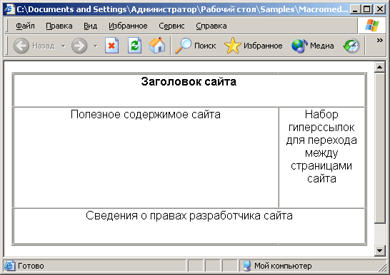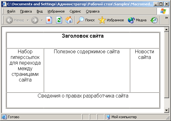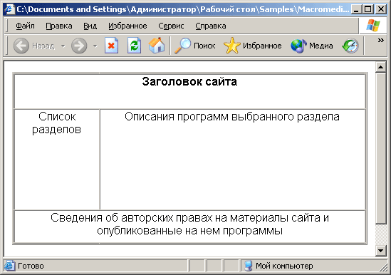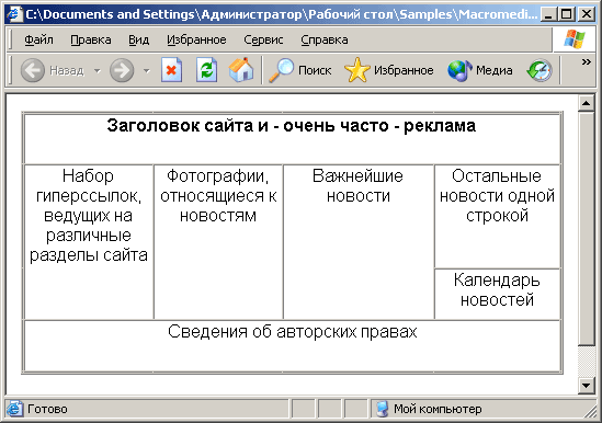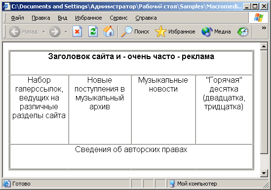 правило, таблица разметки занимает всю ширину окна Web-обозревателя, т. е. Web-дизайнер